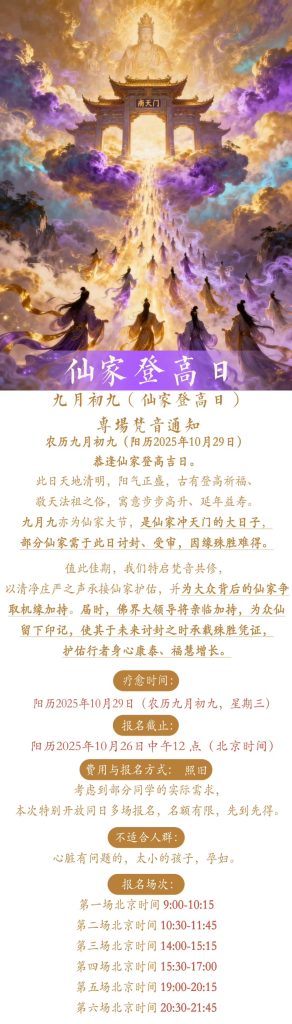 值此佳期,我们特启梵音共修,以清净庄严之声承接仙家护佑,并为大众背后的仙家争取机缘加持。届时,佛界大领导将亲临加持,为众仙留下印记,使其于未来讨封之时承载殊胜凭证,护佑行者身心康泰、福慧增长。
