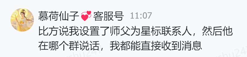 这里有一个标记星标联系人的办法,如果标记了的话,这个联系人在任何一个群说话,你都会得到提醒